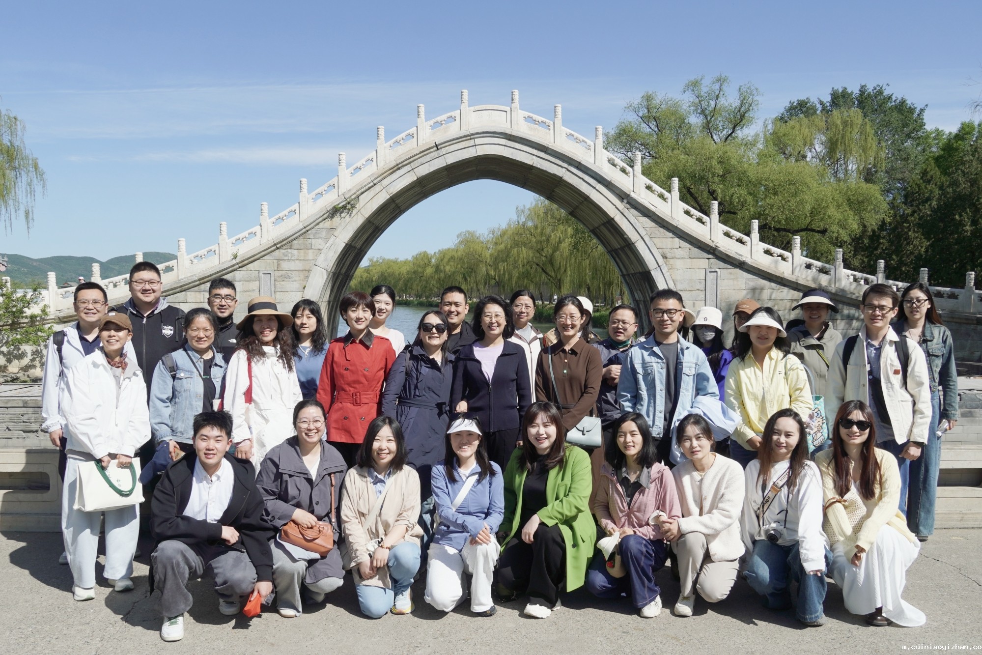 活动以紫竹院码头为起点,教职工沿长河古航道乘船前往颐和园。泛舟碧波之上,大家欣赏两岸杨柳依依的春日风光,聆听娓娓道来的漕运故事与园林建筑艺术,触摸北京城的水脉记忆,感悟大运河文化带的历史底蕴。抵达颐和园后,教职工集体参观了益寿堂“中共中央进京赶考之路”专题展览。通过珍贵的历史图片、文献和实物,大家重温了1949年中共中央从西柏坡迁至北平、毛泽东等领导人进驻益寿堂的红色历程,深刻感悟中国共产党“赶考”精神的时代内涵。随后,队伍前往颐和园水操学堂,了解晚清时期海军教育的历史背景,感受近代中国自强求索的奋斗精神。